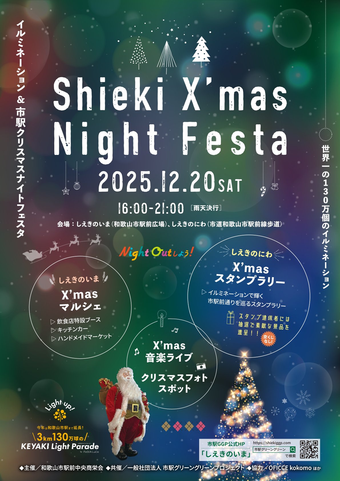 和歌山市駅エリアでも、イルミネーションストリートを盛り上げようと和歌山市駅地域活性化イベント「市駅 X’mas Night Festa」を、12月20日(土)に開催します。