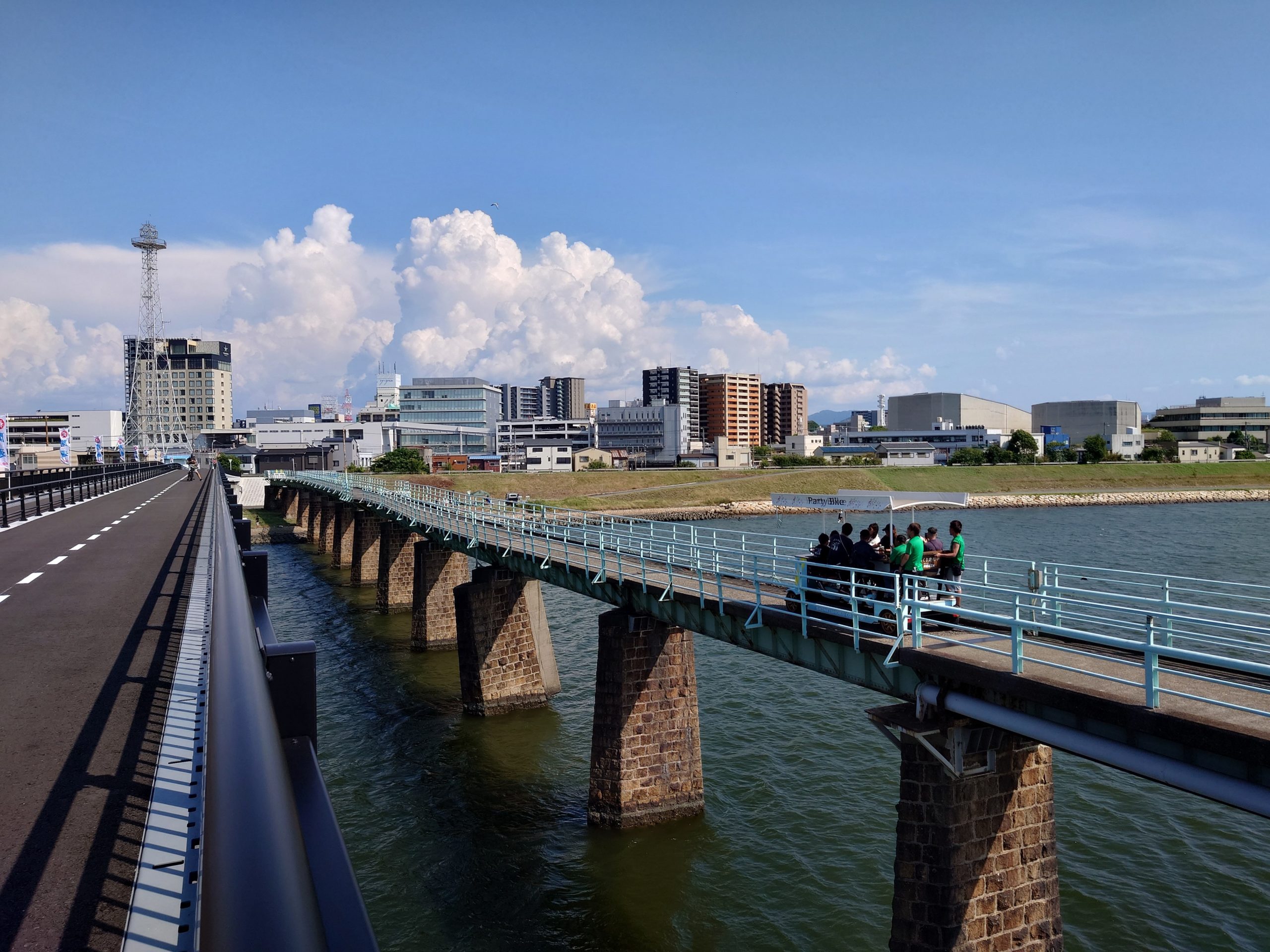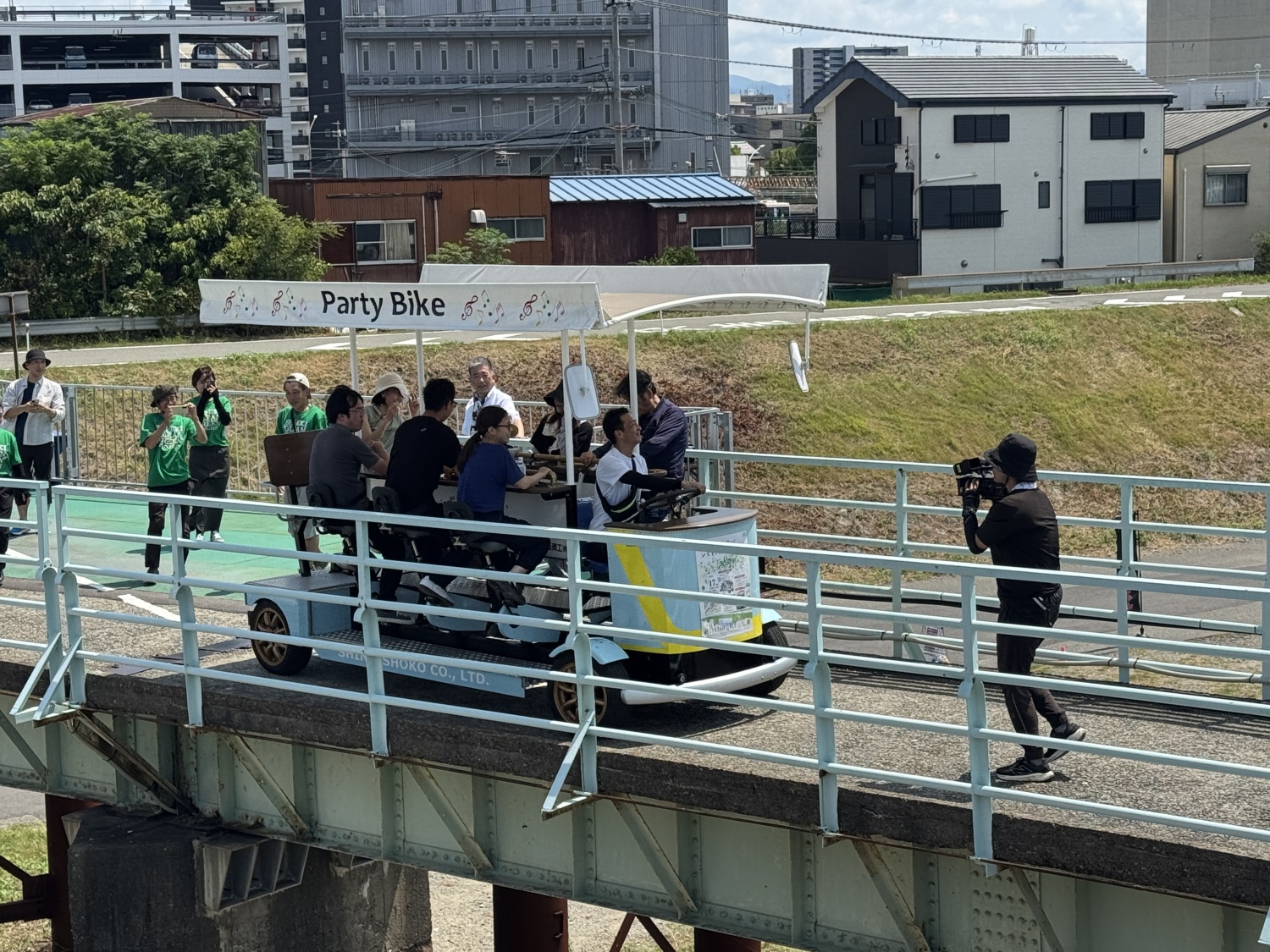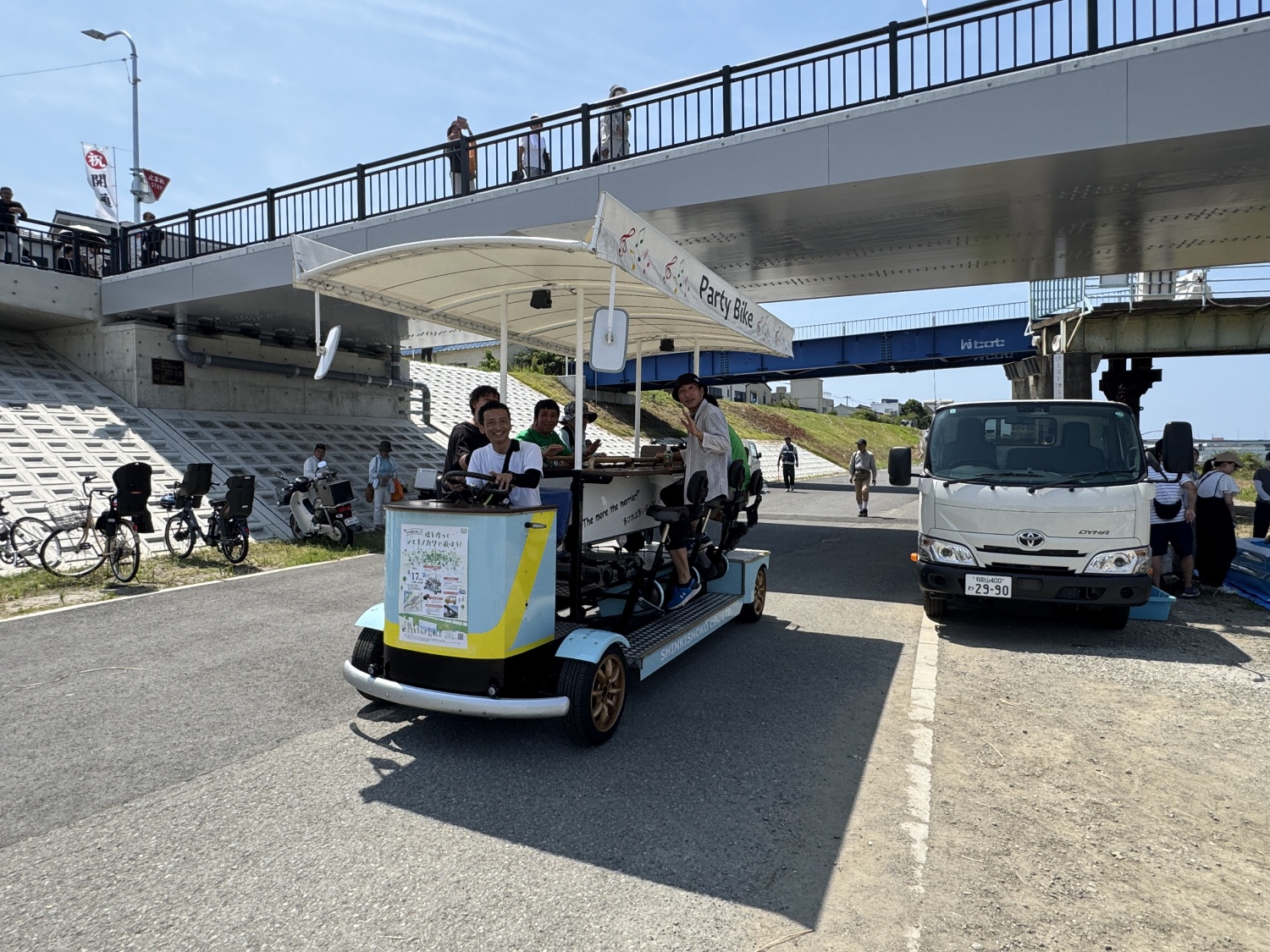 午後からは本イベントの目玉コンテンツとして、旧河西橋でのパーティーバイク乗車体験も行いました。神姫商工株式会社より、同社が開発した9人乗りの自転車を特別に持ち込んでいただき、心地良い川風に吹かれながら、計7便をほぼ満員で運行することができました。