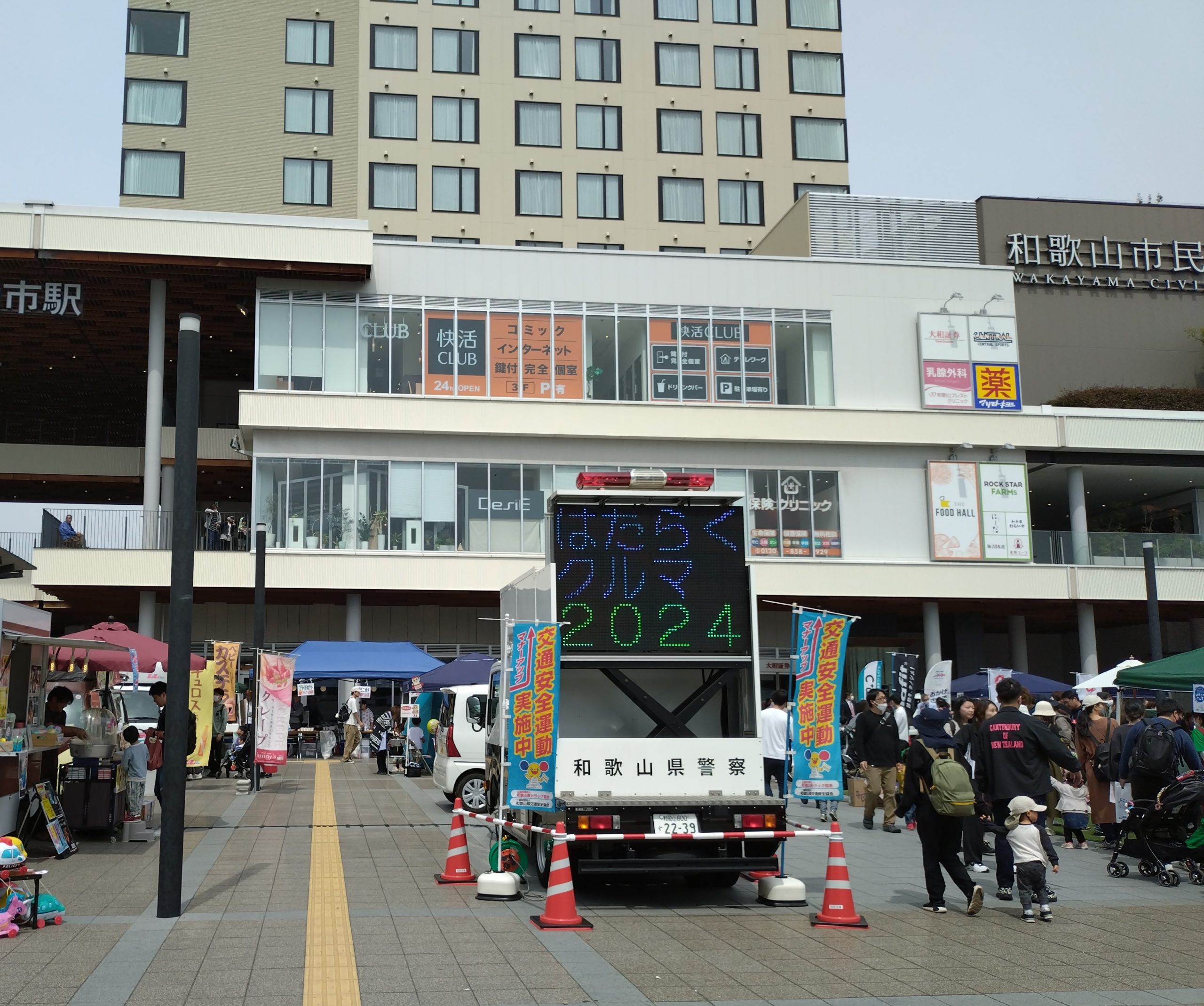 4月6日(土)・7日(日)の2日間、和歌山市駅前広場にて「しえきのいま『はたらくクルマ』 2024」を開催しました。3回目の開催となった今回は、警察車両や消防車両など「はたらくクルマ」を展示し、写真撮影などを楽しんでいただきました。