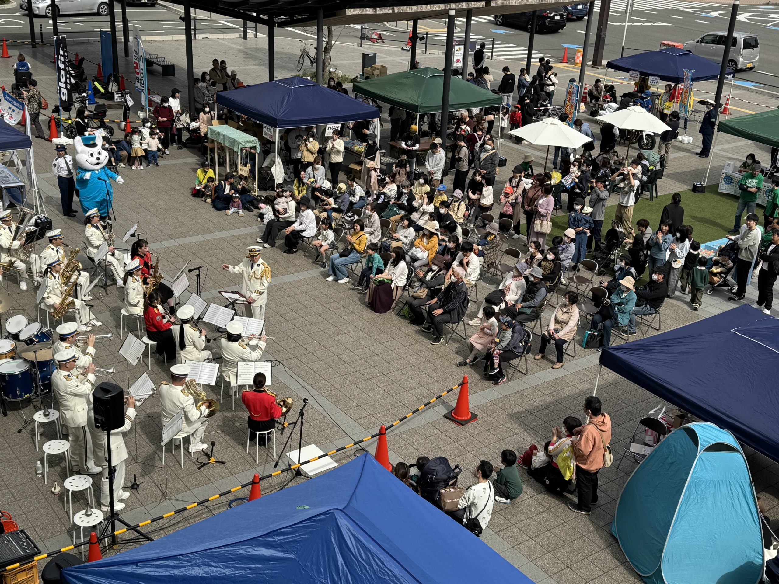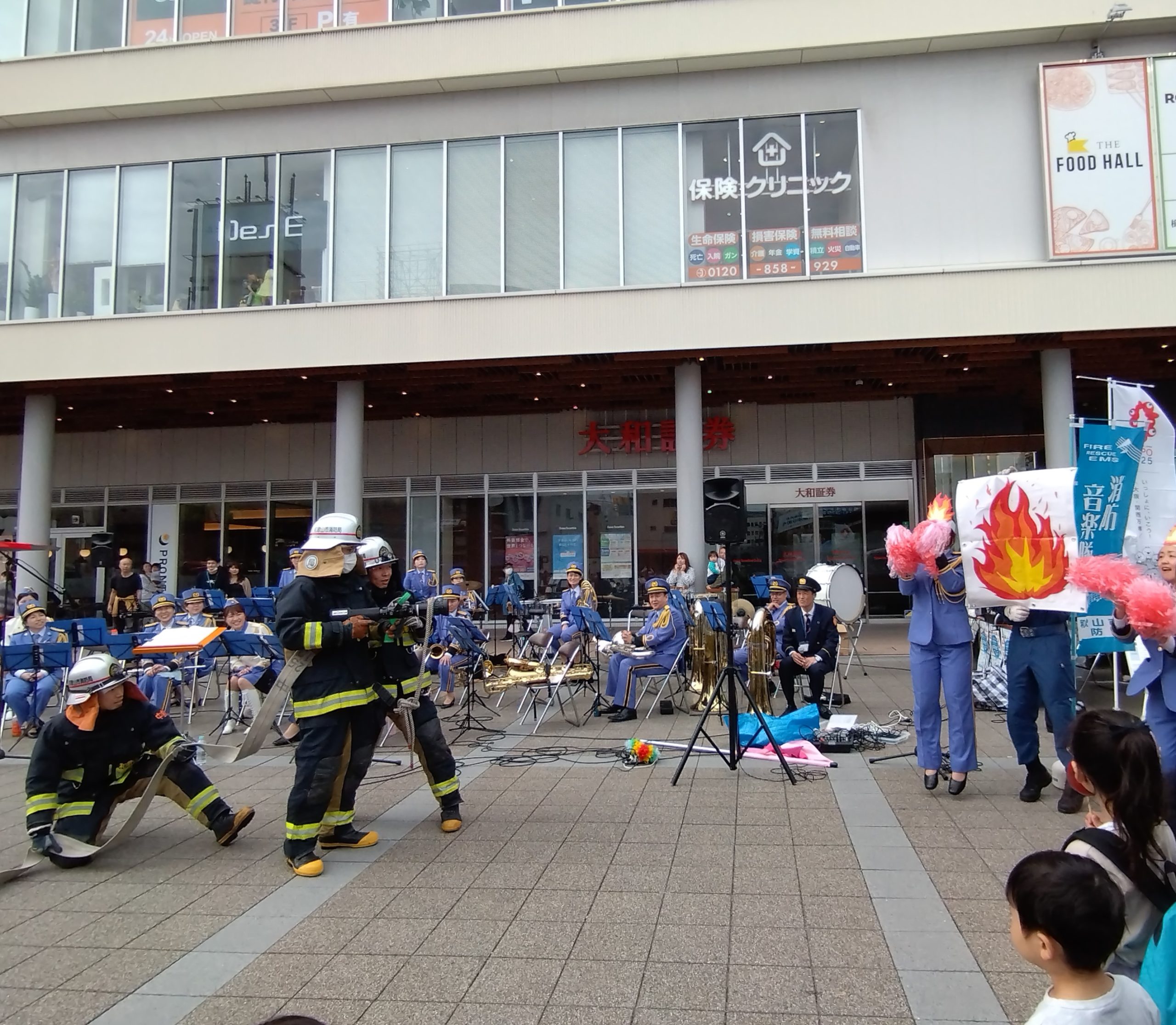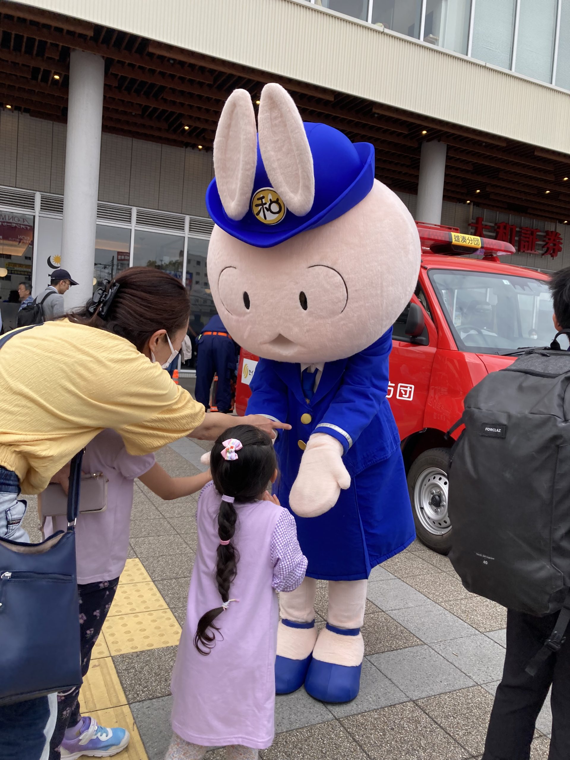 7日は「防火、防災」をテーマに、消防署の消防ポンプ車とVR防災体験車、地域の消防団の消防ポンプ車のほか、TOYOTAプリウス・C+walk・WHILL・レッカー車などが展示され、消防の子ども防火服の着用・乗車体験、マスコットキャラクター「和びっとちゃん」との撮影会も行われました。午後には「和歌山市消防音楽隊」による演奏と楽しい火の用心の劇も加わり、会場を盛り上げました。