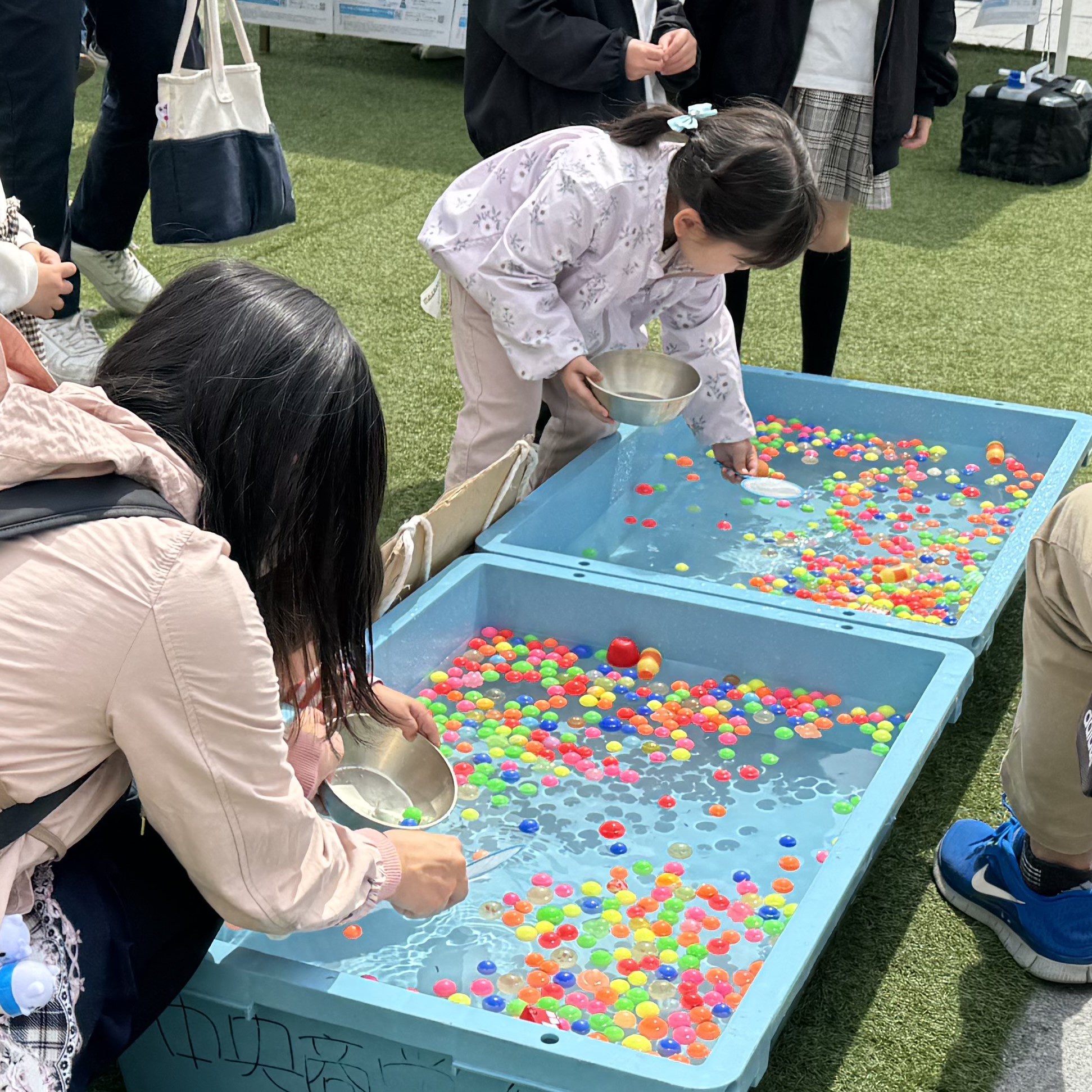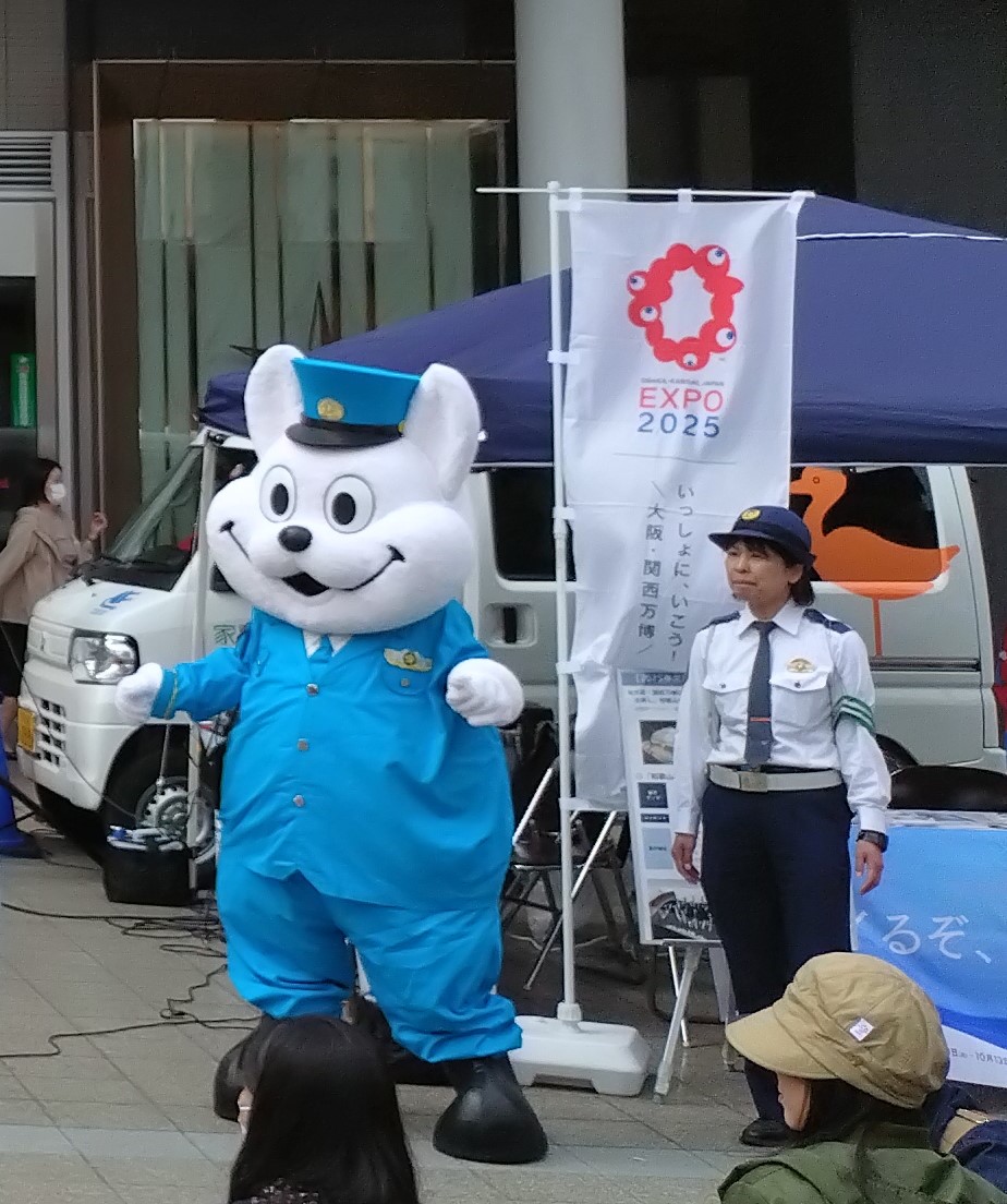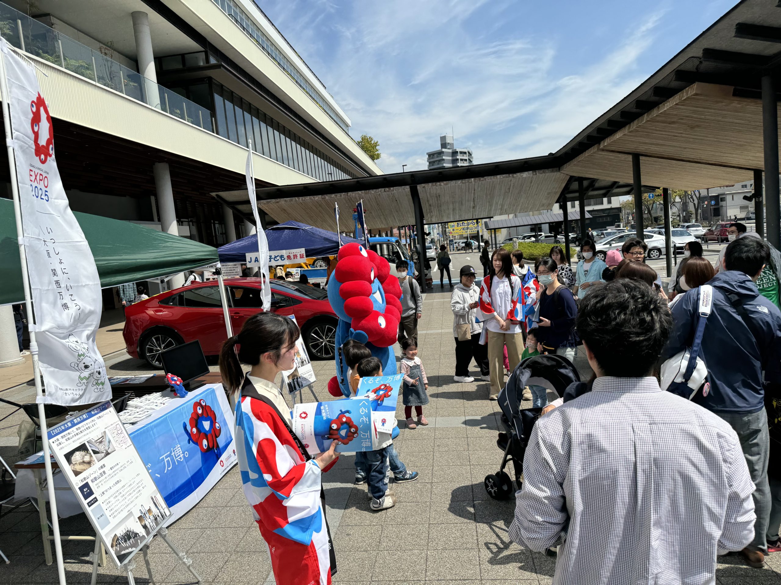 その他、両日ともJAF「子ども安全免許証」の発行、「はたらくクルマ手形スタンプ」の配布を行なったほか、スーパーボールすくいや輪投げ、千本釣りなどが楽しめる縁日コーナー、キッチンカーの出店やパラソル付きテーブル等による飲食エリアも設けました。更に、2025年に開催される大阪・関西万博のPRブースを設置、公式キャラクター「ミャクミャク」も来場し、多くの子ども達が写真撮影に集まりました。また和歌山市民図書館でも、交通安全や防災をテーマにしたイベントも同時開催されました。