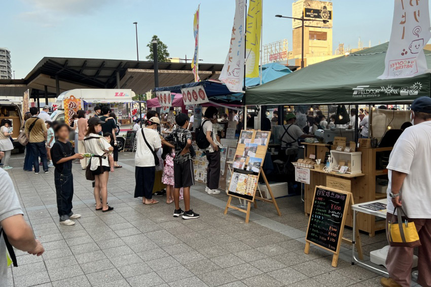 毎年恒例の市駅夏まつりはコロナ禍の影響により2020年・2021年は開催できませんでしたが、今年は3年ぶりの開催となり、メイン会場となった城北通りの特設ステージや出店エリアは、16時半の開始時からかつてないほどの多くの人出で賑わいました。