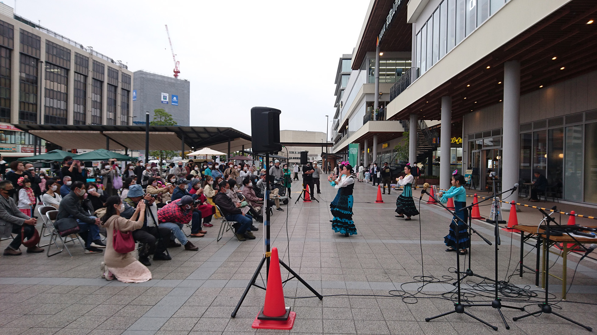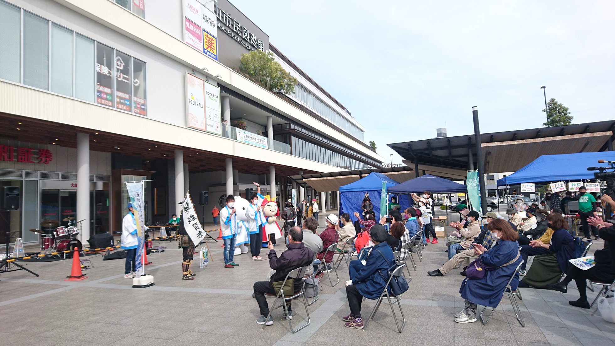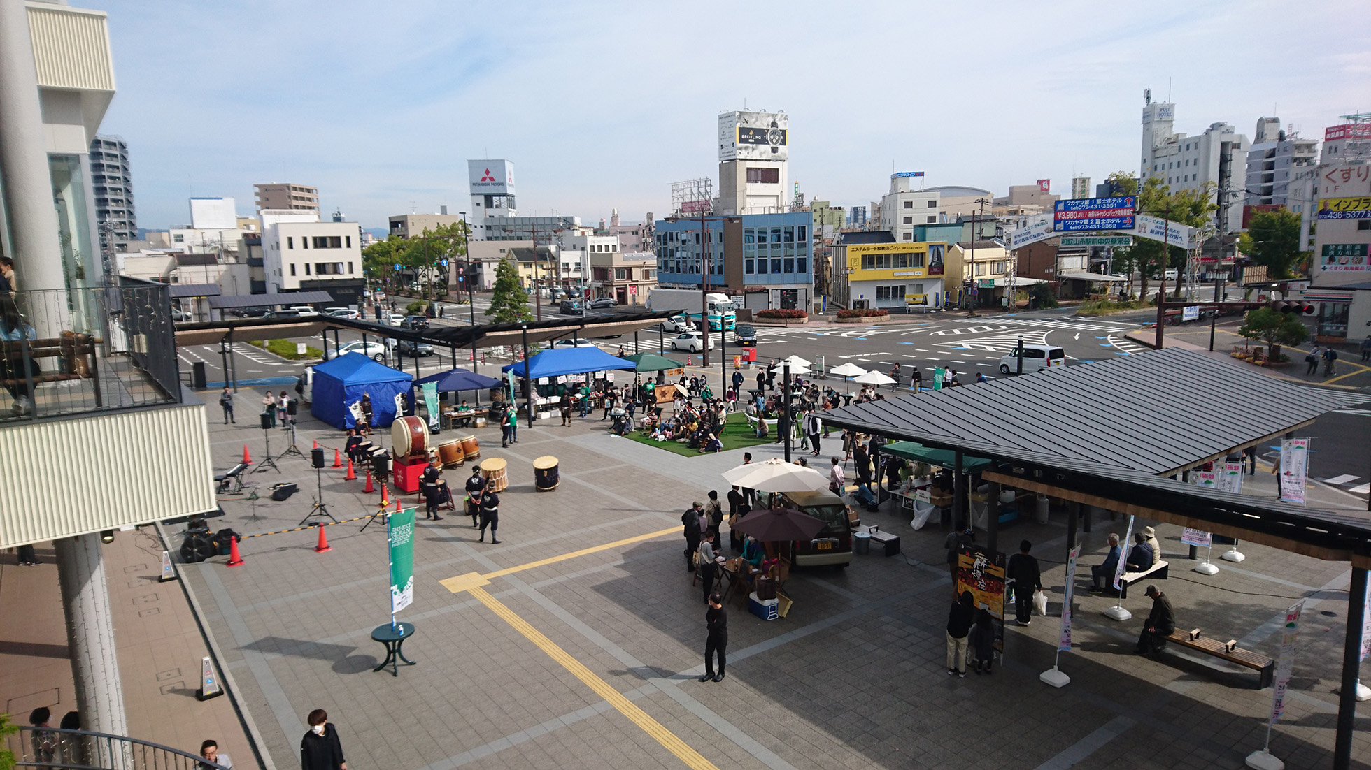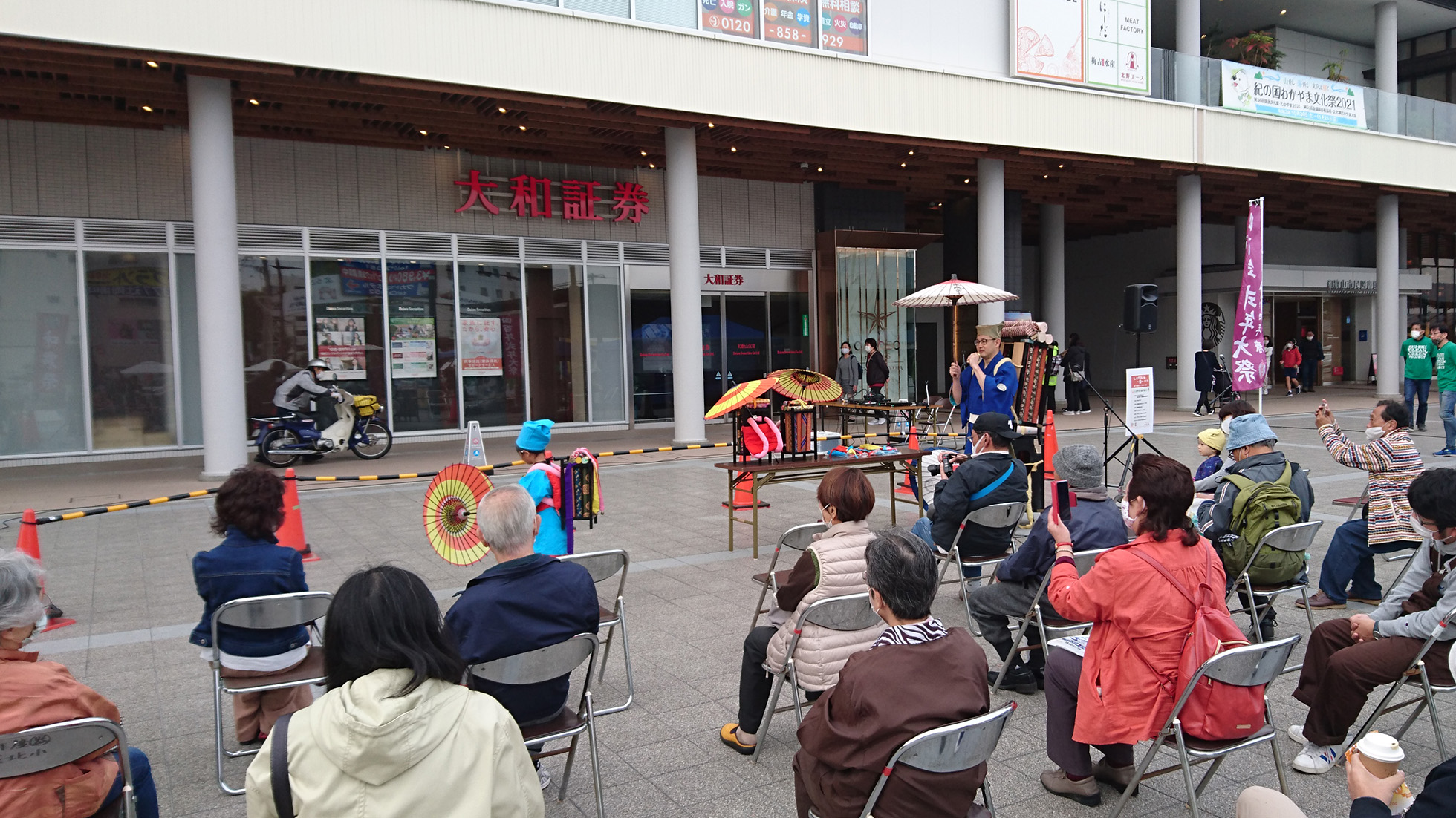 11月6日(土)に和歌山市駅前広場の賑わいづくりイベント「しえきのいま 2021秋 〜音〜」を開催しました。本年10/30〜11/21に開催された紀の国わかやま文化祭の応援事業として企画したもので、和歌山市ゆかりのアーティストや団体による音楽・舞踊などのステージを中心に、芝生の上にハンモックやデッキチェアを置いたピクニック広場を設け、周囲にはフードやドリンクの出店ブースが並びました。また冒頭では和歌山市民図書館の新しい移動図書館車「ほんわか号」も公開され、命名式が行われました。お天気にも恵まれ、小さなお子さま連れから年配の方々まで延べ1000人以上の方々にお越しいただき、無事に終了することができました。ご来場いただいた皆様、関係者の皆様ありがとうございました。