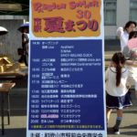 昨年の市駅夏まつりは天候不良の影響により縮小開催となりましたが、今年は30回記念として、2年ぶりの本格開催となり、城北通り歩行者天国特設ステージにおいては、30回を祝う式典や書道パフォーマンス、子ども神輿、伏虎義務教育学校吹奏楽部の演奏会、地元アーティストの音楽ライブ、最後に吉本芸人によるエンタメライブで夏を彩りました。