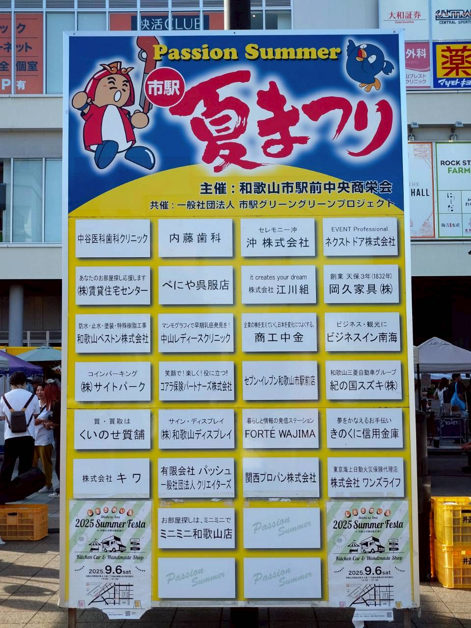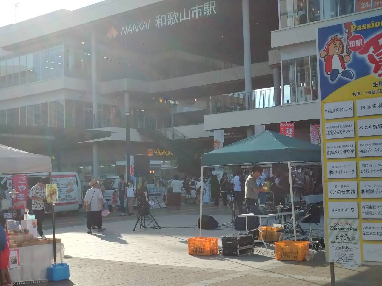楽しく誰でも参加できる地域ぐるみの風物的なイベントの実現を目指し、地域のコミュニケーションを深めることを目的として、「市駅夏まつり」は、和歌山市駅前中央商栄会主催、市駅グリーングリーンプロジェクト共催で開催し、同時に市駅グリーングリーンプロジェクト主催の「2025 Summer Festa」を開催しました。