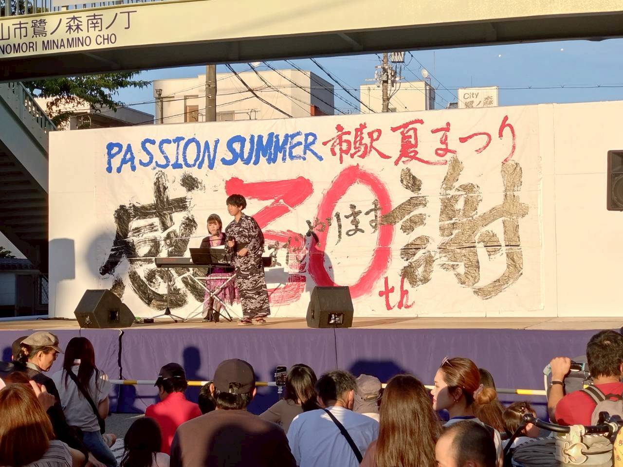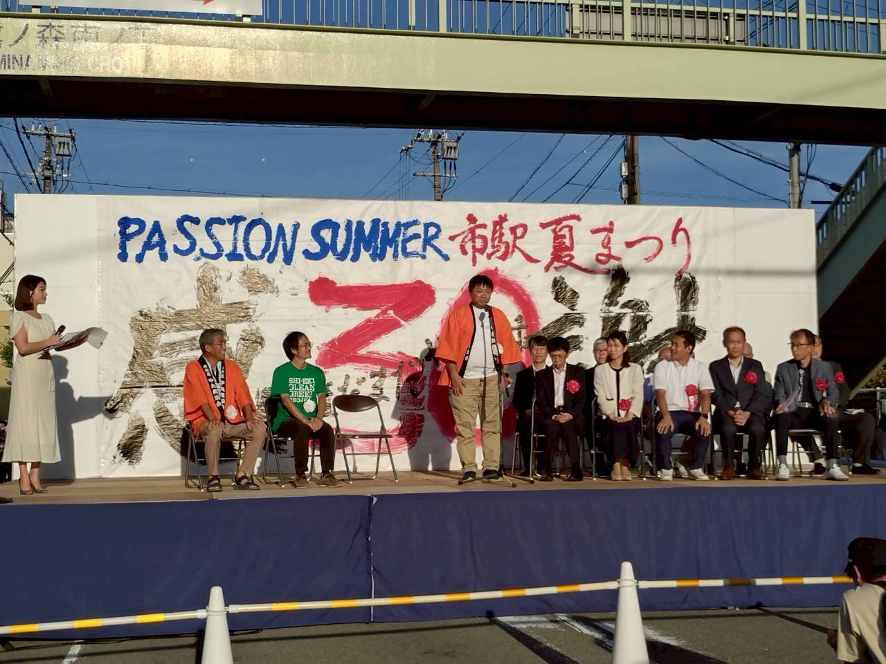 昨年の市駅夏まつりは天候不良の影響により縮小開催となりましたが、今年は30回記念として、2年ぶりの本格開催となり、城北通り歩行者天国特設ステージにおいては、30回を祝う式典や書道パフォーマンス、子ども神輿、伏虎義務教育学校吹奏楽部の演奏会、地元アーティストの音楽ライブ、最後に吉本芸人によるエンタメライブで夏を彩りました。