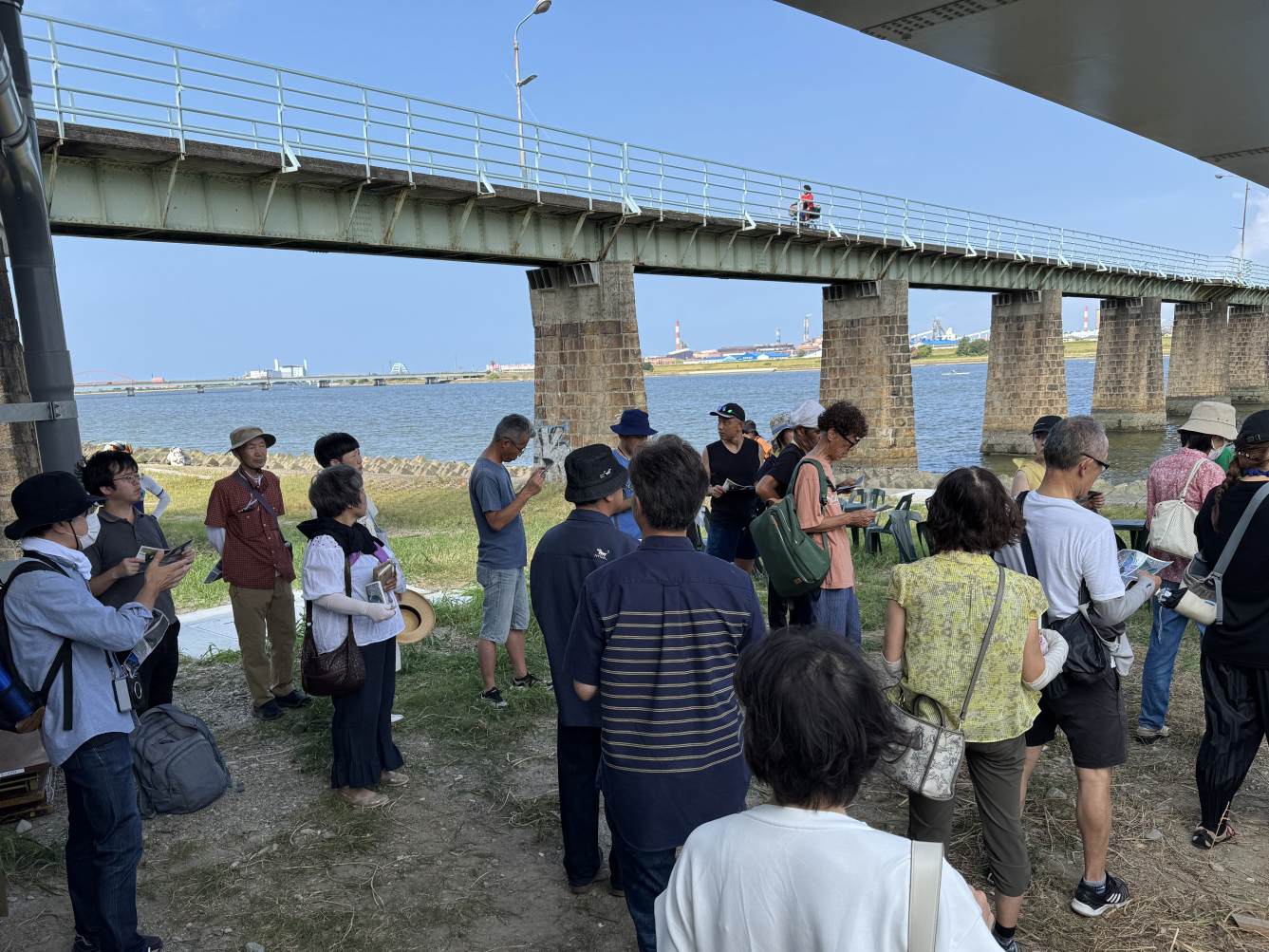 9時からは建築家の中西重裕氏により、1914年に加太軽便鉄道(後の南海加太線)の鉄橋として架けられた旧河西橋や、周辺の近代化遺産についてレクチャーをいただき、続けて旧河西橋の「渡り納め」となるガイドツアーを行いました。